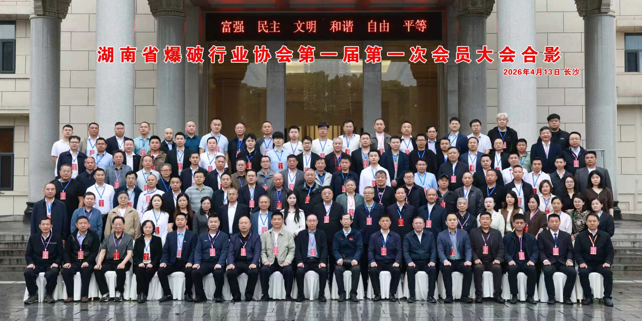 2026年4月13日,湖南省爆破行业协会第一届第一次会员大会在湖南宾馆隆重召开。来自政府监管部门、行业协会、科研院所及骨干企业的会员代表,以及特邀专家、行业知名人士等共150余人齐聚长沙,共同见证湖南省爆破行业迈入组织化、规范化发展的新阶段。